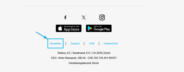 Am Ende jedes Newsletters findest du im Footer die Option „Abmelden“, mit der du den Newsletter ebenfalls abbestellen kannst.
