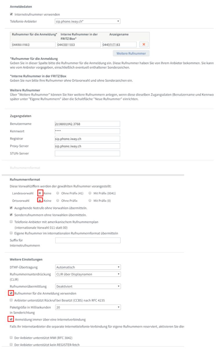 - Trage die Internetrufnummer (Telefonnummer) und die Anmeldedaten (z.B. Benutzername, Kennwort, Registrar) in die entsprechenden Eingabefelder ein.
