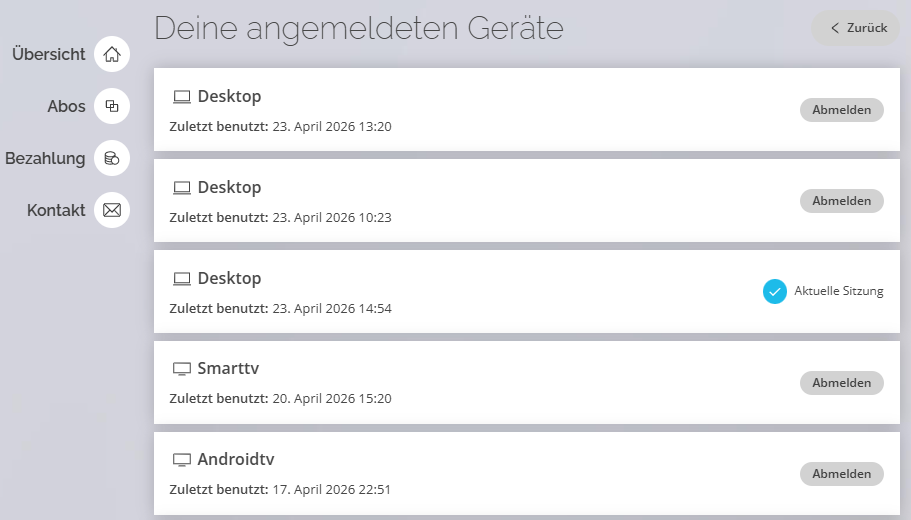- Klicke beim entsprechenden Gerät auf Abmelden. Das Gerät wird sofort abgemeldet.