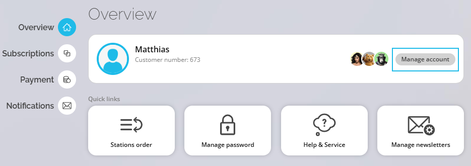 You can access the device overview at my.teleboy.ch/user/devices – or in the Cockpit under Overview → Manage account → Device management.