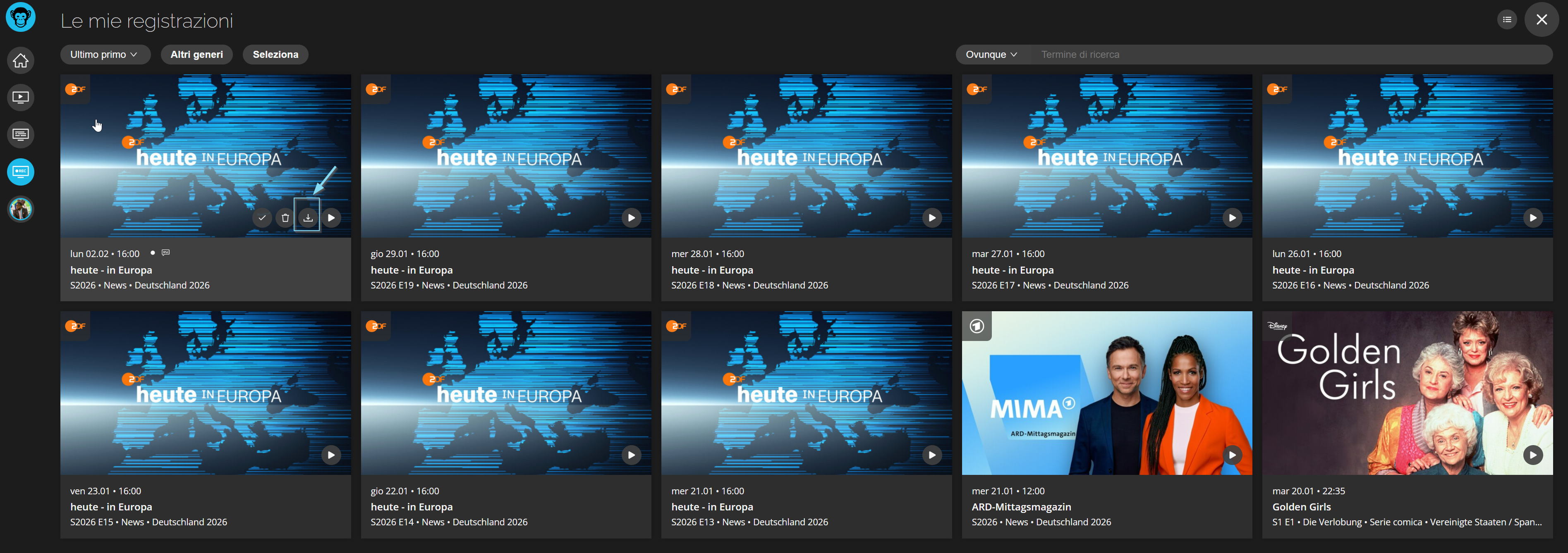 Per una maggiore flessibilità, puoi scaricare i programmi registrati per salvarli localmente sul tuo dispositivo. Ciò ti consente di guardare i programmi in qualsiasi momento e ovunque ti trovi, anche quando sei offline. La funzione di download è disponibile sui seguenti dispositivi: